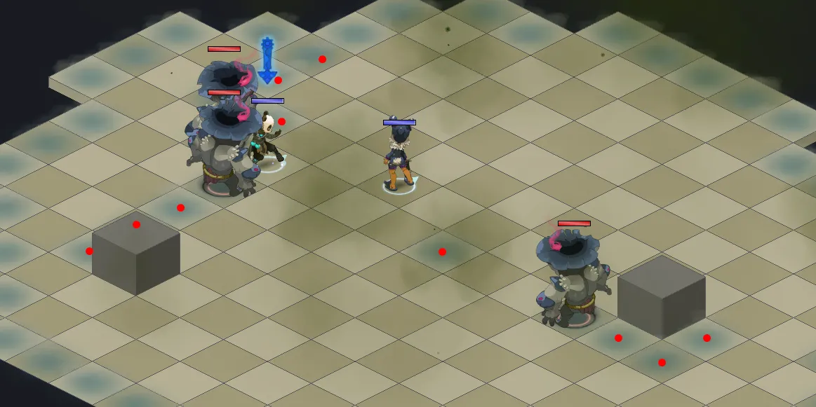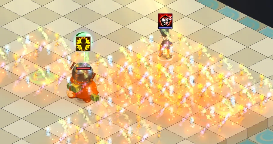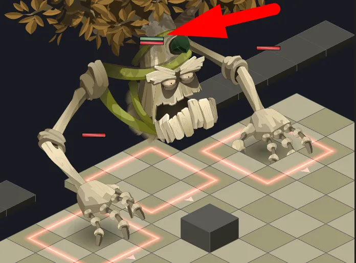 - Le totem au centre de la map partage les dégâts avec vous : S’il meurt : fin du combat (il ne peut pas prendre de dégâts directs des monstres) : il faudra généralement terminer le combat en moins de 6 tours pour éviter de perdre avec cette mécanique