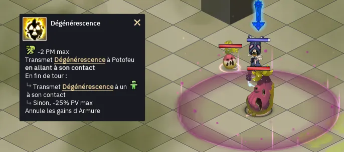 - L’aubergine vous applique du poison quand vous passez dans sa zone (retrait PM et dégâts)