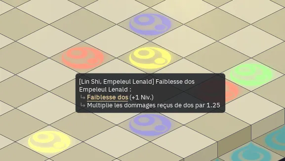 - Chaque tour cependant, il lancera une attaque autour de chaque glyphe (en carré) qui diminuera de 40 les résistances de vos personnages se trouvant proche d’un de ces glyphes