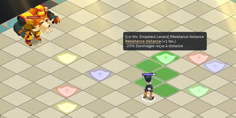 - Le totem au centre de la map lance un sort à chaque tour qui agit en rebond. Il le lance à 3PO max et rebondit à 2PO max entre les cibles. Alliés et ennemis peuvent proc le rebond. Les alliés qui reçoivent le rebond sont fortement soignés, les adversaires classiques rien ne ne passe, le boss perdra des résistances s’il est présent dans la « chaîne » de rebond entre des alliés
