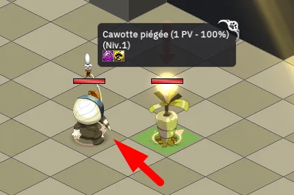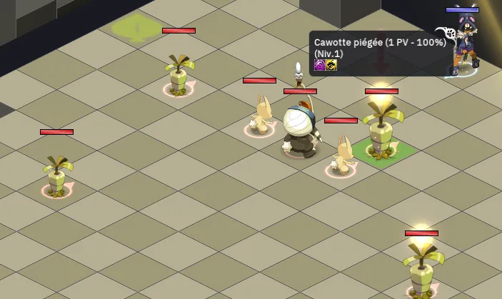 - Le boss doit être dans l’explosion d’une Cawotte pour perdre son invulnérabilité (pour 1 tour) : il faut donc le placer proche d’une cawotte à 1PV et attendre son tour pour pouvoir lui infliger des dégâts