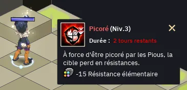 - Les pious qui vous tapent vous infligeront également un état “picoré” qui fera baisser vos résistances, évitez de prendre trop d’attaque avec un même personnage