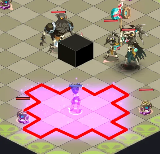 Le tour d’après avoir subi le glyphe tonneau, l’effet s’inverse : il perd des dégâts mais gagne des résistances : les monstres (et joueurs) auront alors une aura verdâtre : Préférez dépenser vos PA sur d’autres monstres