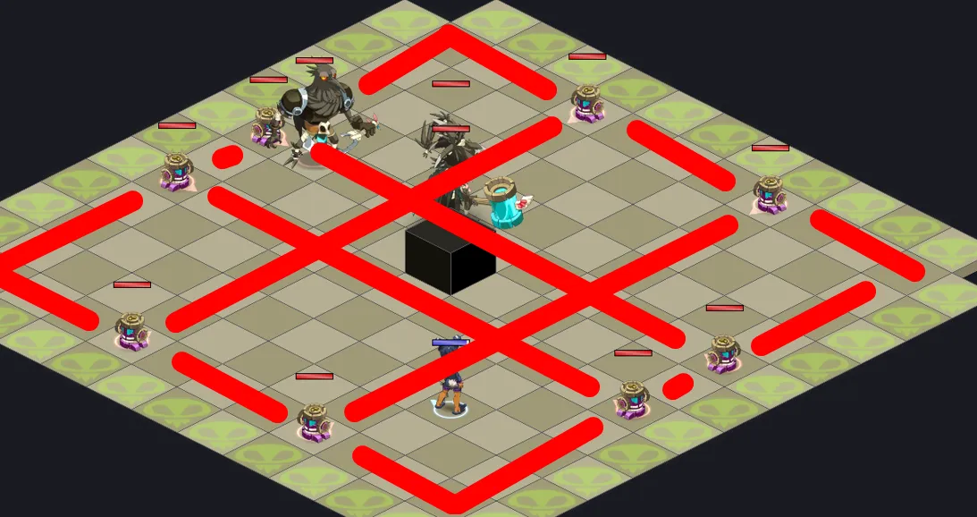 des “Tas de squelettes” sont présents sur la map et deviendront des bouftous squelettes au prochain tour : éliminez-les très rapidement (ils sont bien plus facile à tuer sous forme de tas que sous forme de bouftous, vous gagnerez ainsi beaucoup de temps)