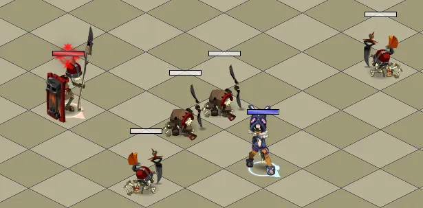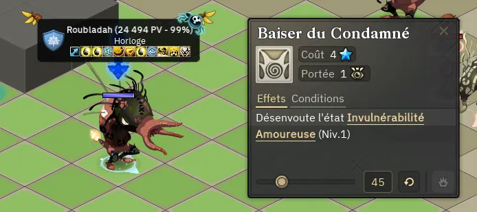 Pour retirer l’invu du boss, il faut aller sur le glyphe blanc au sol (qui change d’emplacemens à chaque tour), se transformer en Slek en passant son tour dessus, puis au tour suivant, lancer le sort spécial à 4PA sur le boss (au corps à corps)