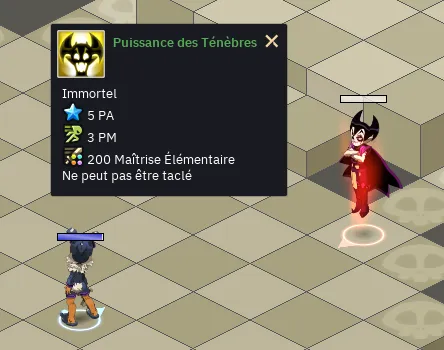 Le boss n’est pas invulnérable mais il restera bloqué à 1PV pour vous faire un tour final destructeur, votre but est seulement de rester en vie avec au moins un personnage à la fin de son tour puis le combat se terminera : pensez à bien séparer les joueurs encore restant en vie pour éviter les gros sorts de zones du boss