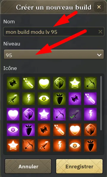 Personnalisez votre build en indiquant le lvl modulé souhaité et un logo