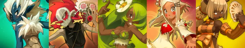 - Mêlée : Sacrieur – Iop – Eliotrope – Ouginak – Sram – Ecaflip - Roublard - Enutrof